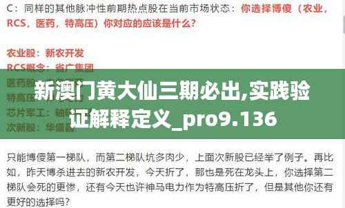 在当前的金融投资领域和博彩市场中,“新澳门黄大仙三期必出”这一词汇成为了许多人关注的焦点。这一热门话题不仅涉及对澳门博彩文化的探讨,还包含了对特定投资策略的分析。它探讨了概率、统计和运气三者结合在一起时,如何影响结果及其可预测性。然而,这个短语究竟指代什么?其背后的实践验证解释定义是怎样的?本文将深入探讨这一话题,为读者提供全面的解答和深入的分析。