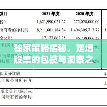 随着金融市场的日益繁荣和资本运作的复杂性增加,定增股票已成为投资者关注的焦点,定增,即定向增发,是上市公司在中小投资者中发行新的股份进行融资的方式,在这样的背景下,“独家包揽定增股票”成为了投资者追求高收益、规避风险的一种重要策略,本文将深入探讨独家包揽定增股票的策略与洞察。