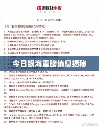 随着全球经济的不断发展和科技的日新月异,银海作为一个重要的经济领域,其最新动态备受关注,本文将为您带来今日银海领域的最新消息,让您全面了解这一领域的最新进展。