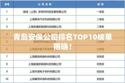 就是青岛安保公司排名前十名的介绍,这些公司在安保领域拥有较高的声誉和广泛的影响力,能够为客户提供专业、高效的安保服务,选择哪家公司进行合作还需要根据具体需求和实际情况进行考虑和选择,希望本文能够为您提供参考和帮助,在选择安保公司时,还需要注意公司的资质和信誉度等方面的问题,以确保合作的安全和顺利。