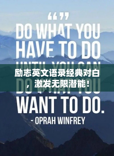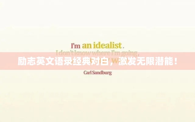 在人生的旅途中,我们常常需要一些励志的话语来鼓舞自己,激发内心的力量,英文语录,以其独特的韵味和深刻的含义,时常成为我们的灵感之源,以下是一些英文语录对白的励志句子,希望它们能给你带来力量,激发你追求梦想的勇气。
