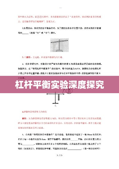 杠杆平衡实验是物理学中的一项重要实验,对于理解力学原理、探究力的平衡状态具有深远意义,本文将围绕杠杆平衡实验专题展开研究,深入探讨杠杆平衡的原理、实验方法、实验步骤以及实验结果分析等方面。