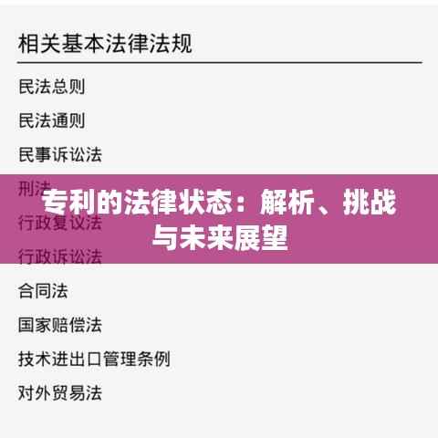 标题:专利的法律状态:解析、挑战与未来展望