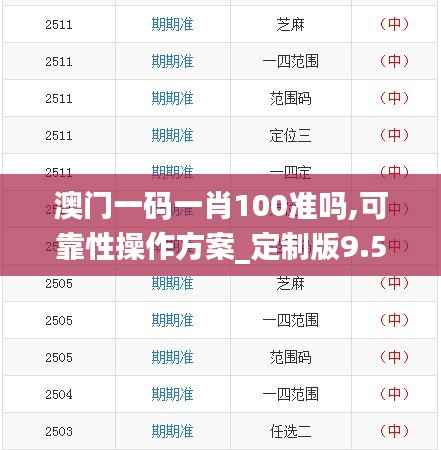 澳门,作为亚洲知名的赌城,一直是旅游与博彩业的重要中心之一。在众多的博彩项目中,一码一肖作为其中的一种,因其刺激与挑战性受到众多玩家的青睐。 随着澳门博彩市场的不断发展和变化,如何保证一码一肖的准确性成为了很多博彩爱好者,特别是那些长期在澳门的赌客关心的问题。 文章将针对“澳门一码一肖100准吗?”这个问题进行深入的探讨,并介绍澳门一码一肖的可靠性操作方案以及如何定制化满足玩家需求。